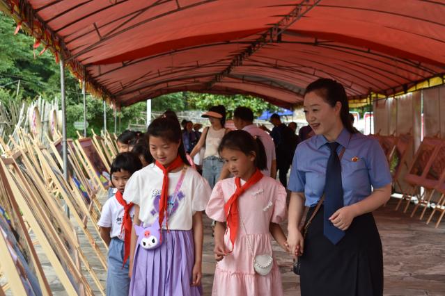 活动开始前,干警们同人大代表、政协委员、人民监督员以及村支两委一起前往湘西州人民检察院公益诉讼法治教育基地进行参观,该法治教育基地是该院打造“一院一品”特色品牌、促进传统村落保护的生动实践,以法治教育无形的力量保护传统古村落的原汁原味,力求推动该院公益诉讼工作走深走实。现场,检察干警带领学生们一起参观了与湘西州当代美术研究院、花垣县文学艺术界联合会协办的“护公益、爱家园”传统村落保护检察公益诉讼主题画展,并就进一步做好新时代检察机关公益诉讼工作充分听取人大代表、政协委员、人民监督员的意见和建议。