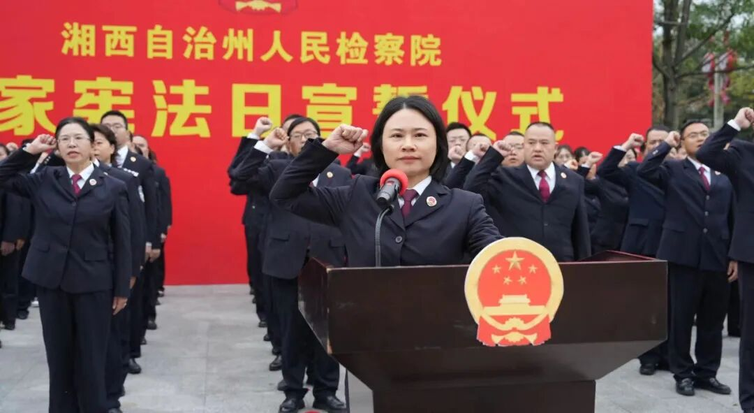 旌旗猎猎映初心,誓言铿锵担使命。今年12月4日,是我国第十二个国家宪法日,湘西州检察院举行宪法宣誓仪式。全体检察人员身着制服,在庄严肃穆的国旗下郑重宣誓,以赤诚法治初心致敬宪法权威。