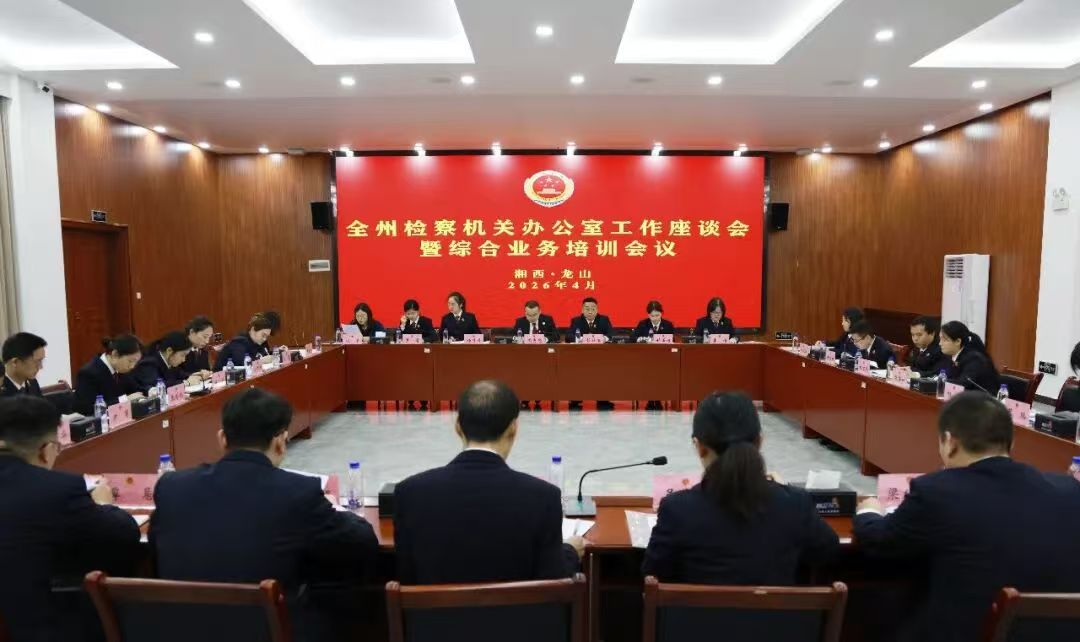 4月10日上午,龙山县检察院一楼的大会议室里,没搭讲台,没摆课件,只有一圈长桌,围坐着一群人——全州检察机关办公室的“笔杆子”们。办公室主任、写作骨干、宣传能手,拢在一处,不为别的,就为给2026年的办公室工作画一张结结实实的“施工图”。
