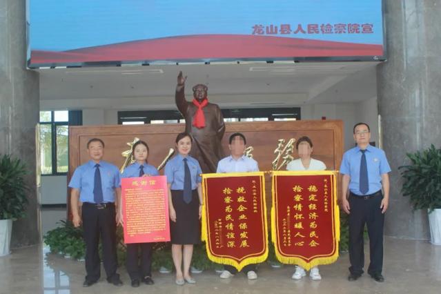 近日,被不起诉人谢某及其所在的湖北省南漳县当地的社区干部,一起将两面印有“挽救企业保发展,检察为民情谊深”“稳定经济为民企,检察情怀暖人心”的锦旗,亲自送到了湖南省龙山县检察院检察长李莉的手中。