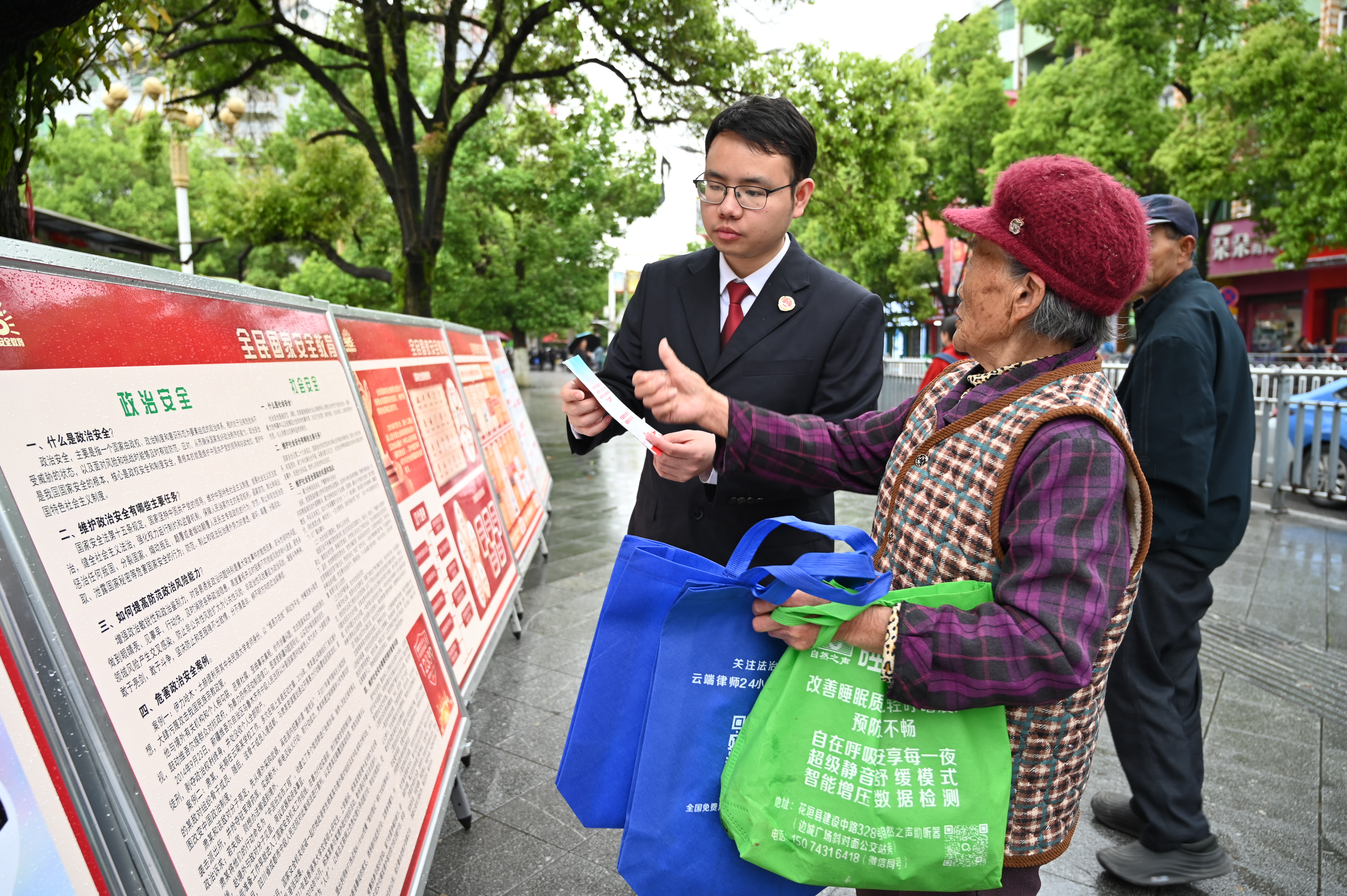 【湘西检察网讯】(通讯员 石超)2026年4月15日是第十一个全民国家安全教育日,为深入贯彻总体国家安全观,花垣县检察院在边城广场开展国家安全主题普法宣传活动。