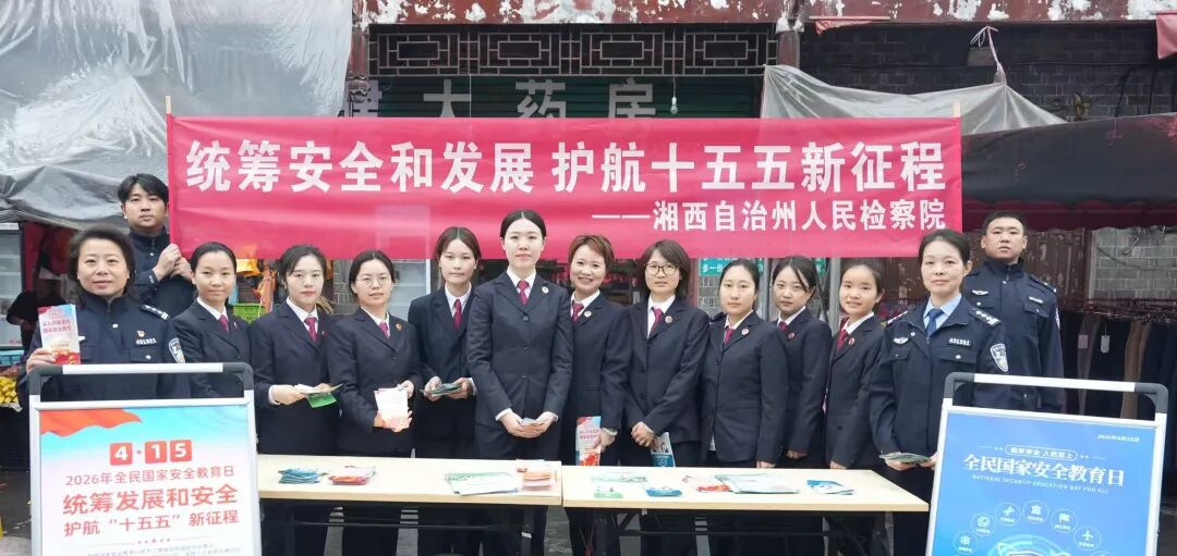 4月15日,湘西州检察院组织干警走进吉首市河溪镇,开展以“统筹安全和发展 护航‘十五五’新征程”为主题的国家安全教育宣传活动,通过发放宣传手册、现场答疑解惑等方式,向群众面对面讲解国家安全相关知识。