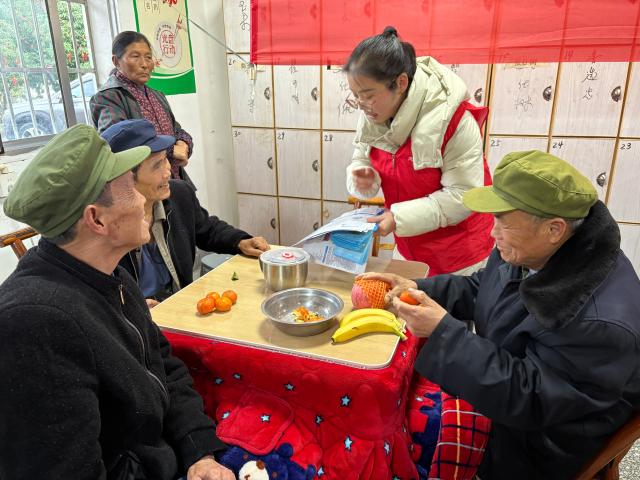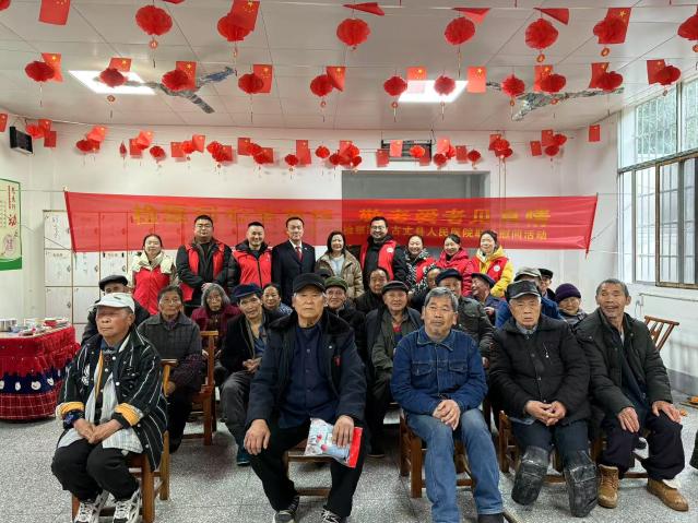 县医院的志愿者为老人量血压、测血糖等,同时对高血压、冠心病等常见慢性病的预防和控制进行讲解,指导老年人健康饮食、适度运动,保持心情愉悦身体健康。