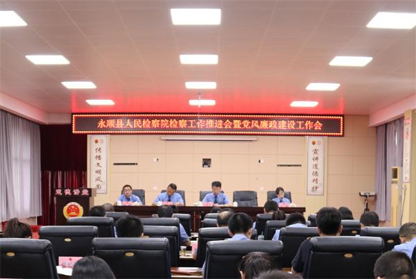 【湘西检察网讯】(通讯员 王最)8月21日,永顺县人民检察院召开检察工作推进会暨党风廉政建设工作会,认真贯彻落实全省检察长研讨班、全州检察机关半年工作推进会暨检察业务讲评会等会议精神,全面总结上半年工作,深入分析研判当下检察业务运行情况,安排部署下一阶段工作。该院党组书记、检察长于永亮出席会议并讲话,永顺县纪委监委派驻县委政法委纪检监察组组长田伟男到会上廉政课。