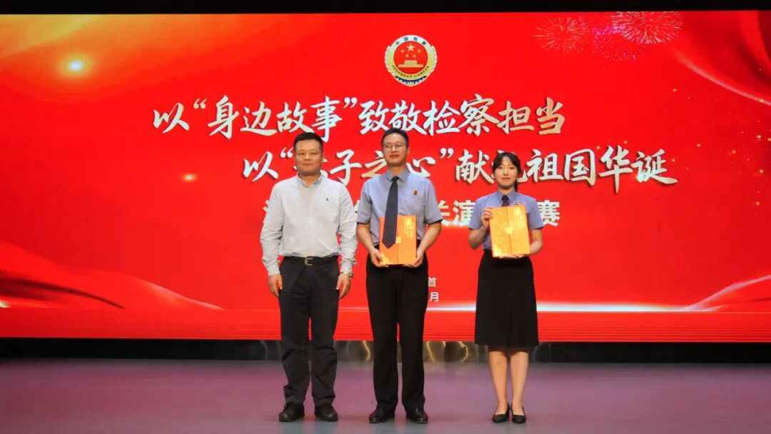 (州检察院党组成员、副检察长蒋巍为最佳故事奖、最具感染力奖获奖选手颁奖)